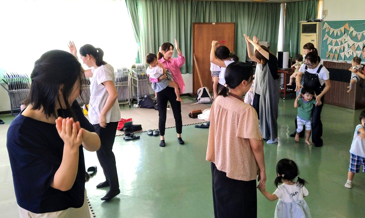 久泉秀美先生の指導のもと、賑やかに身体を動かして遊びました。先生が奏でる軽快な