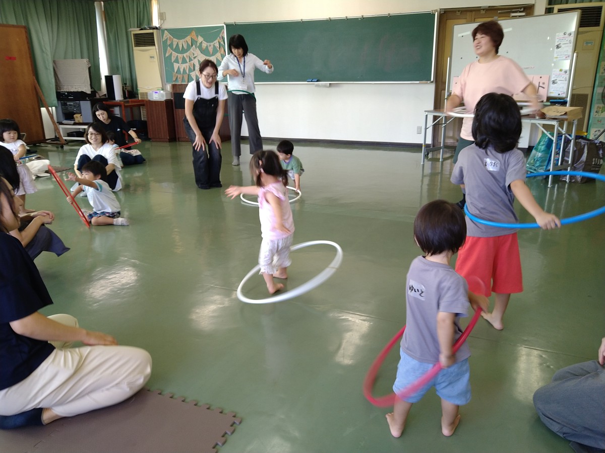 とっても楽しいねフープを使ったリズムも乗り物に乗ったみたいで嬉しさ倍増です。