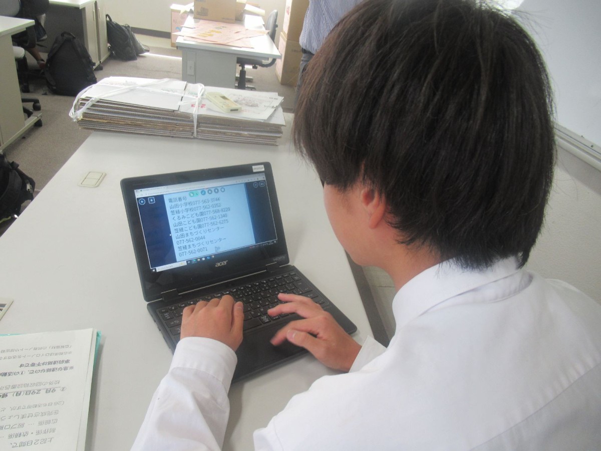 生徒が作成した、写真のポスター、チラシなどをご覧ください。(松中地域コーディネーター 杉江由紀子)