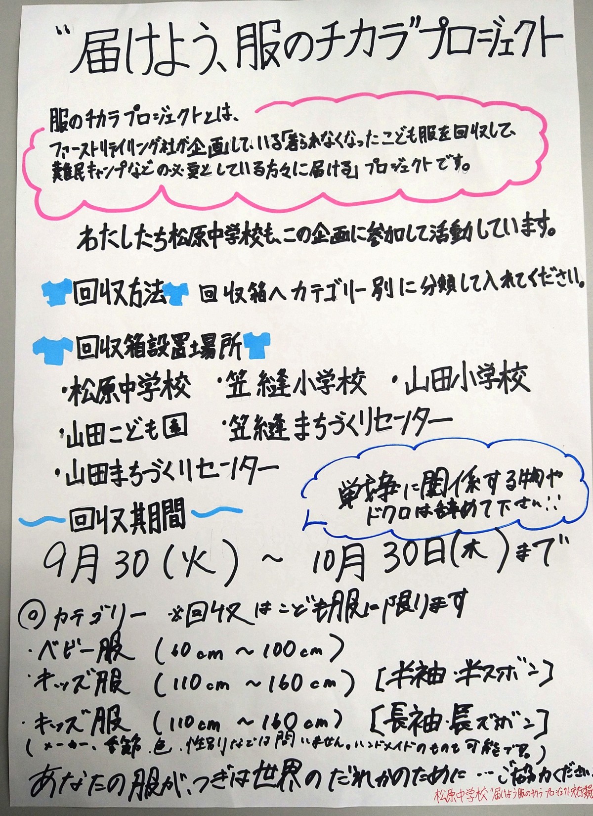 松原中学校「服プロ実行委員会」の取組みにご支援・ご協力をお願いします。