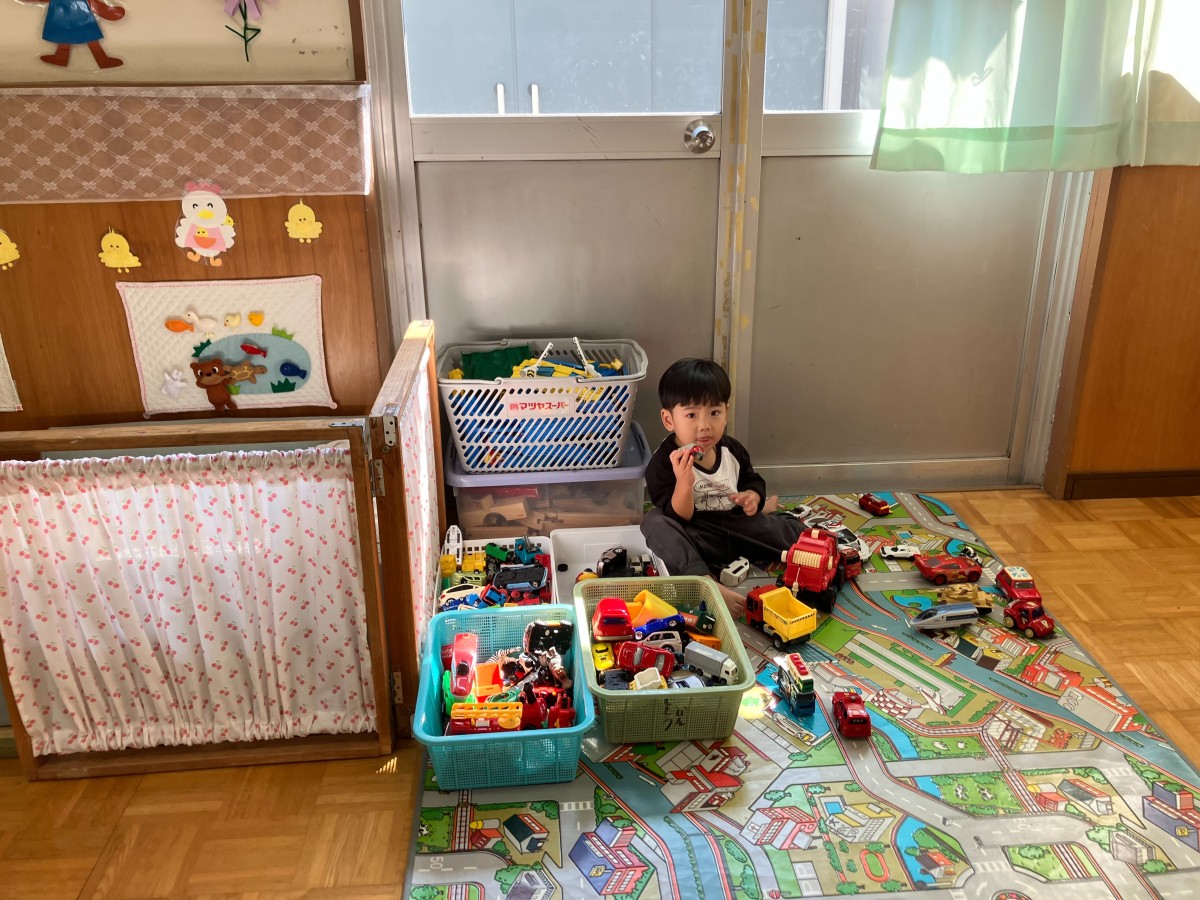 順番にこどもたちの名前を呼ぶと 「はーい」と手を上げて 元気に返事をする子、 恥ずかしそうに返事をする子 、月齢の小さい子たちはお家の方に代わりに返事をしてもらい楽しい雰囲気で始まりました![]()