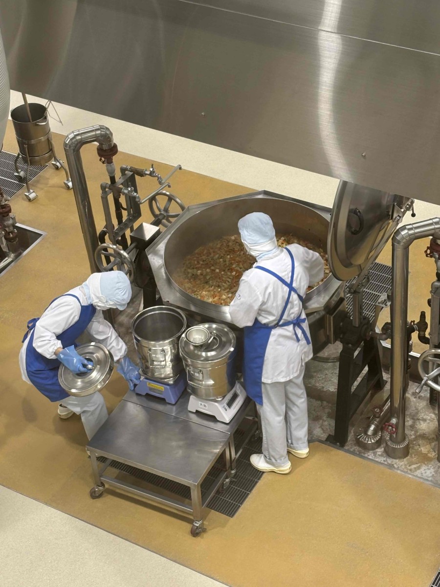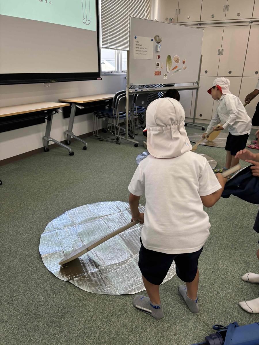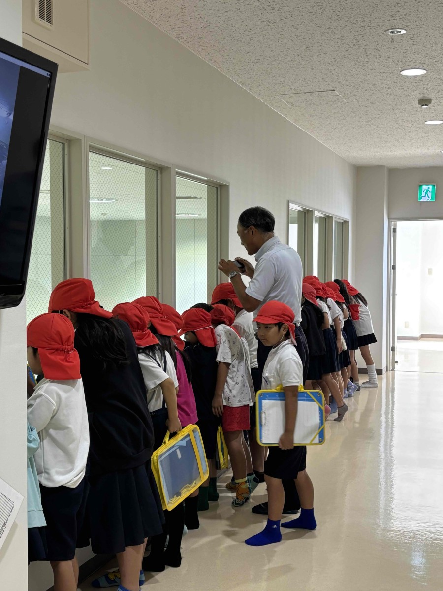 10月17日2年生が給食センターの見学をしました。初めにセンター所長さんからご挨拶があり、続いて栄養教諭の先生からのお話を聞きました。ここでは約9,000人分の給食を作っていて、朝5時から野菜を切ったりご飯を炊いたりして準備が始まり、11時には各小学校へ運び届けているそうです。調理員さんは役割ごとにエプロンや帽子、靴の色が分けられていました。また、献立を作る栄養士さんや給食を運ぶトラック運転手さんなど多くの方々がお仕事されていました。調理の様子を見学させてもらうと大きな大きなお鍋に入った材料を大きなしゃもじでかき混ぜておられました。しゃもじは子ども達の背の高さ程あって持つだけでもたいへんでした。毎日こんな風にして美味しい給食を作ってくださっているんだという事がわかりました。明日からまた感謝して、残さず食べないといけないなぁと子ども達は実感したことと思います。