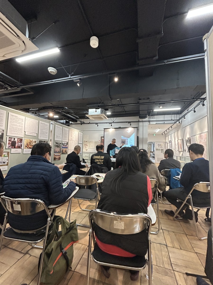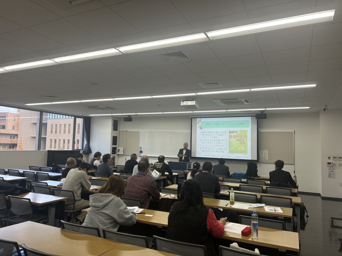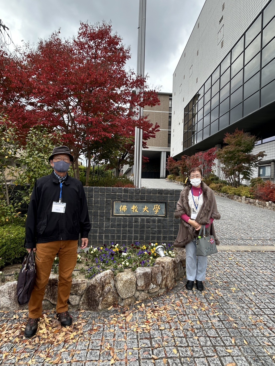 「松原中学校区人権交流研修会」として、11月18日に仏教大学とツラッティ千本に行かせていただきました。仏教大学では、原清治教授の講義を受講させていただきました。原教授のソフトな語り口とユーモアたっぷりの講義は、とても楽しくあっと言う間の90分でした。しかし、その内容は、コロナ下以降、真っ暗な教室で誰も電気を付けようとせず授業を待つ大学生。「いじり」から「いじめ」に変わる子ども達のカーストの話しなど、私にはショッキングな事ばかりでしたばかりでした。午後からは、後藤直教授から「楽只小学校」や「ツラッティ千本」の成り立ちをお聞きしました。ジオラマもありとても詳しく、分かりやすく説明してくださいました。その後、フィールドワークとして、楽只市営住宅周辺の散策をしました。少し肌寒い日でしたが、紅葉が綺麗で有意義な1日でした。お世話くださいました新田会館の皆様に感謝申し上げます。