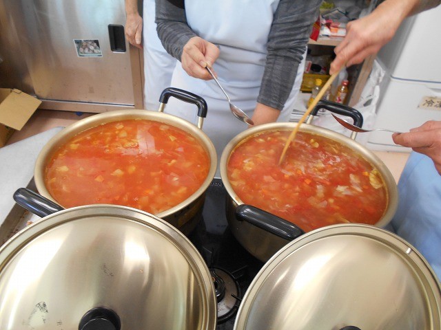 お皿いっぱいにのったロールサンドとスタッフが作ってくださった「ミネストローネ」「ラスク」は相性抜群。みんなで美味しく完食しました。