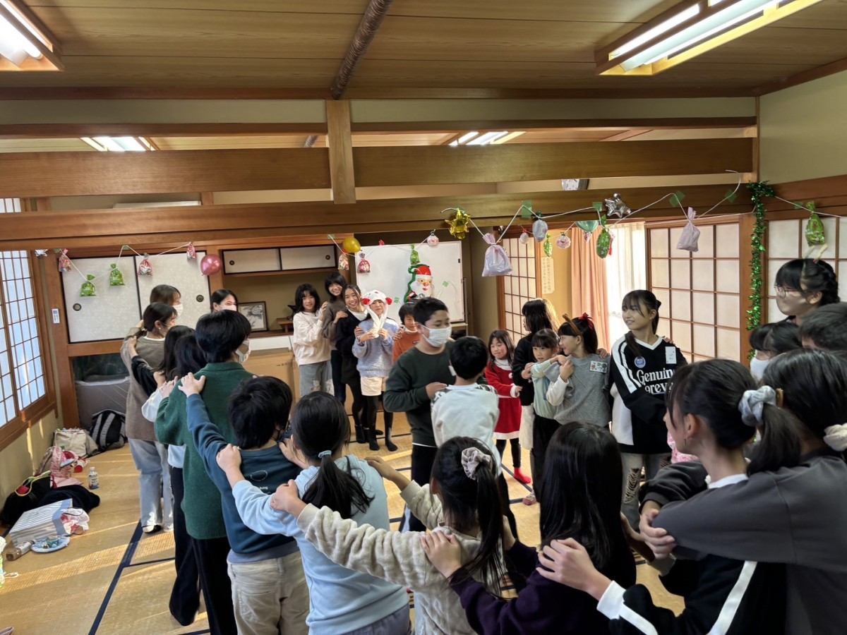 12月13日(土)に山子連の第2回講座、クリスマスパーティーを開催しました。5、6年生リーダーが事前に企画し、当日は参加者のみんなとリーダーとでクッキングをしたり、クリスマスキャンドル作りや毛糸でリース作りを楽しみました。最後はじゃんけん列車で大人も子どももみんなで大いに盛り上がりました。