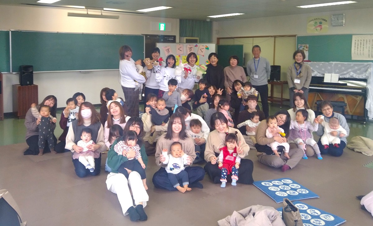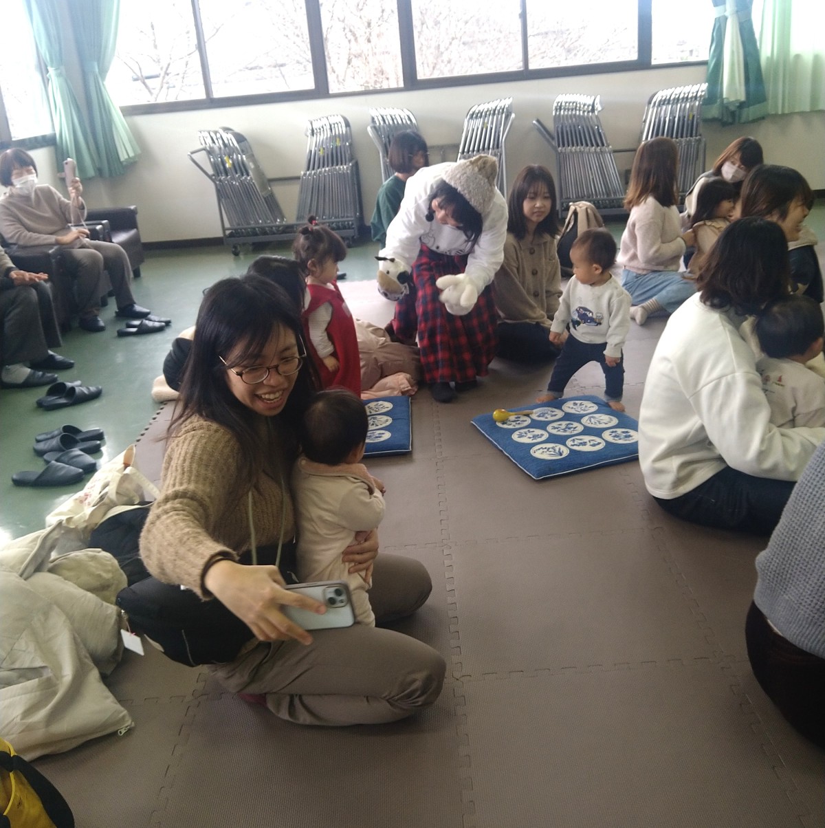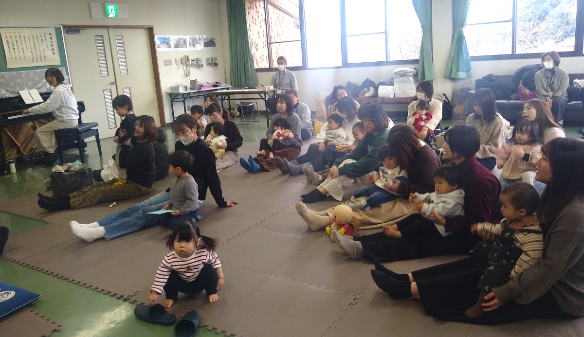 すくすくランドではすっかりお馴染みのピアーチェさん。この日は雪のちらつく寒い日でしたが、もふもふの洋服に身を包んだ可愛いみんながたくさん集まってくれ、集会室はぽっかぽか、総勢47名の賑やかなコンサートとなりました。