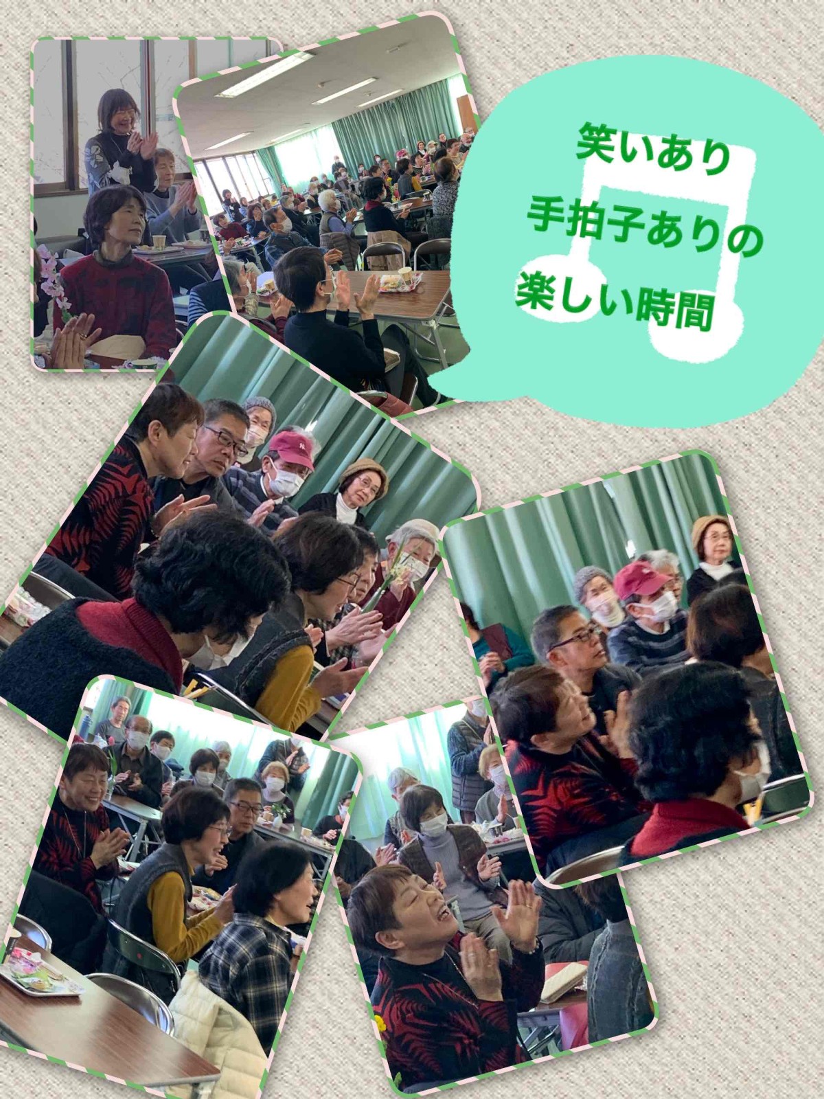 演奏の合間には軽妙なトークが繰り広げられ、会場は終始笑い声絶えませんでした。そして、演奏中には自然と手拍子が起こり、会場全体が一体となった温かい雰囲気に包まれました。またイベントの終わりには、演奏者に直接感謝を伝えようと、来場者が握手を求めるという場面も有り、皆さん喜んで頂けました。次回は3月21日〔なごみプアマナフラ同好会様〕のフラダンスと体操です。暖かくなりました。皆さんどうぞお越しください。