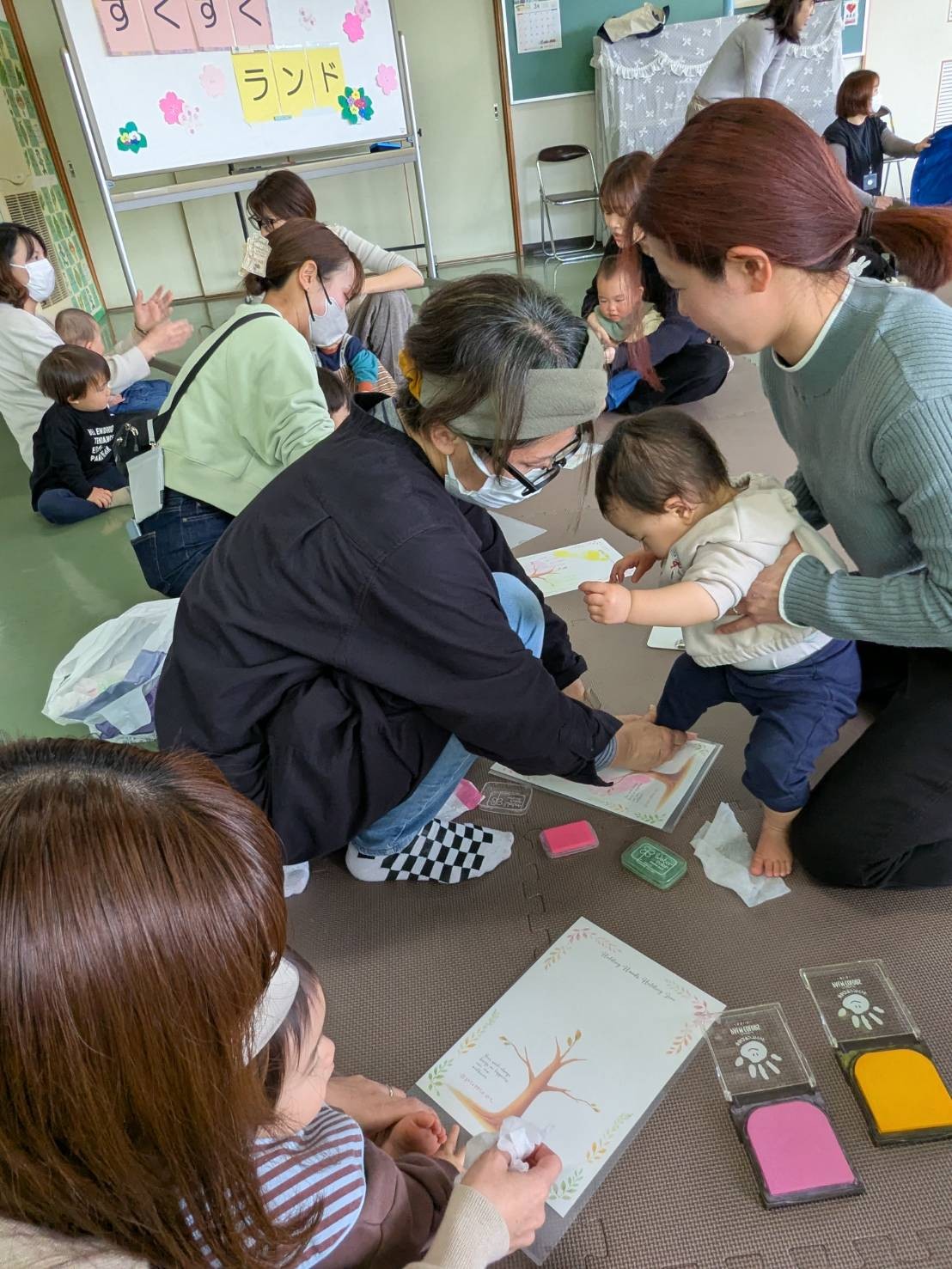 3月23日(月)今年度最後、12回目のすくすくランドを開催しました。当日は24組もの親子の参加!集会室は元気いっぱい、笑顔いっぱいでした![]()