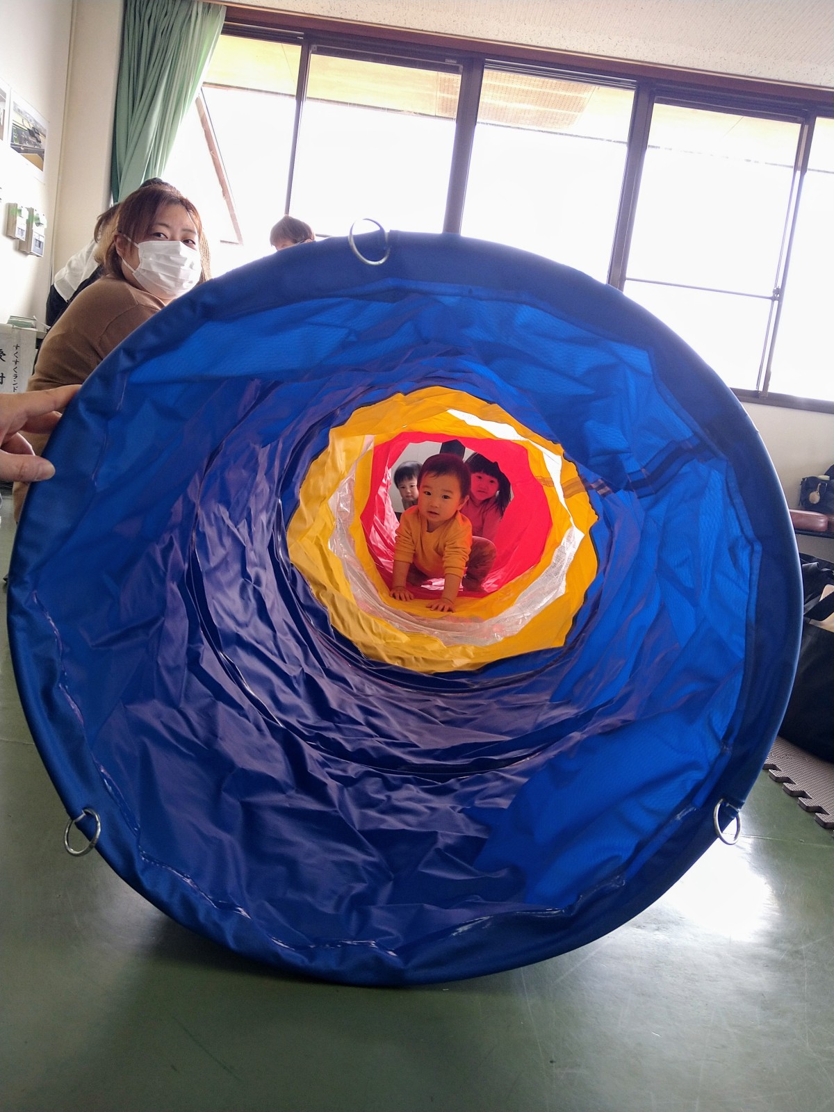 子どもたちは、ボールプール遊びやトンネルくぐりに興味津々でした。