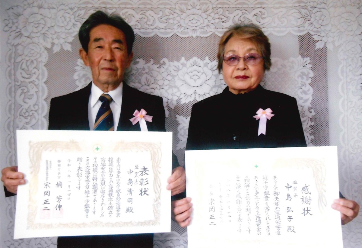 私たちの安全な暮らしは、中島様ご夫妻のような地域に根ざしたたゆまぬ努力に支えられています。この度の受章、心よりお祝い申し上げます。