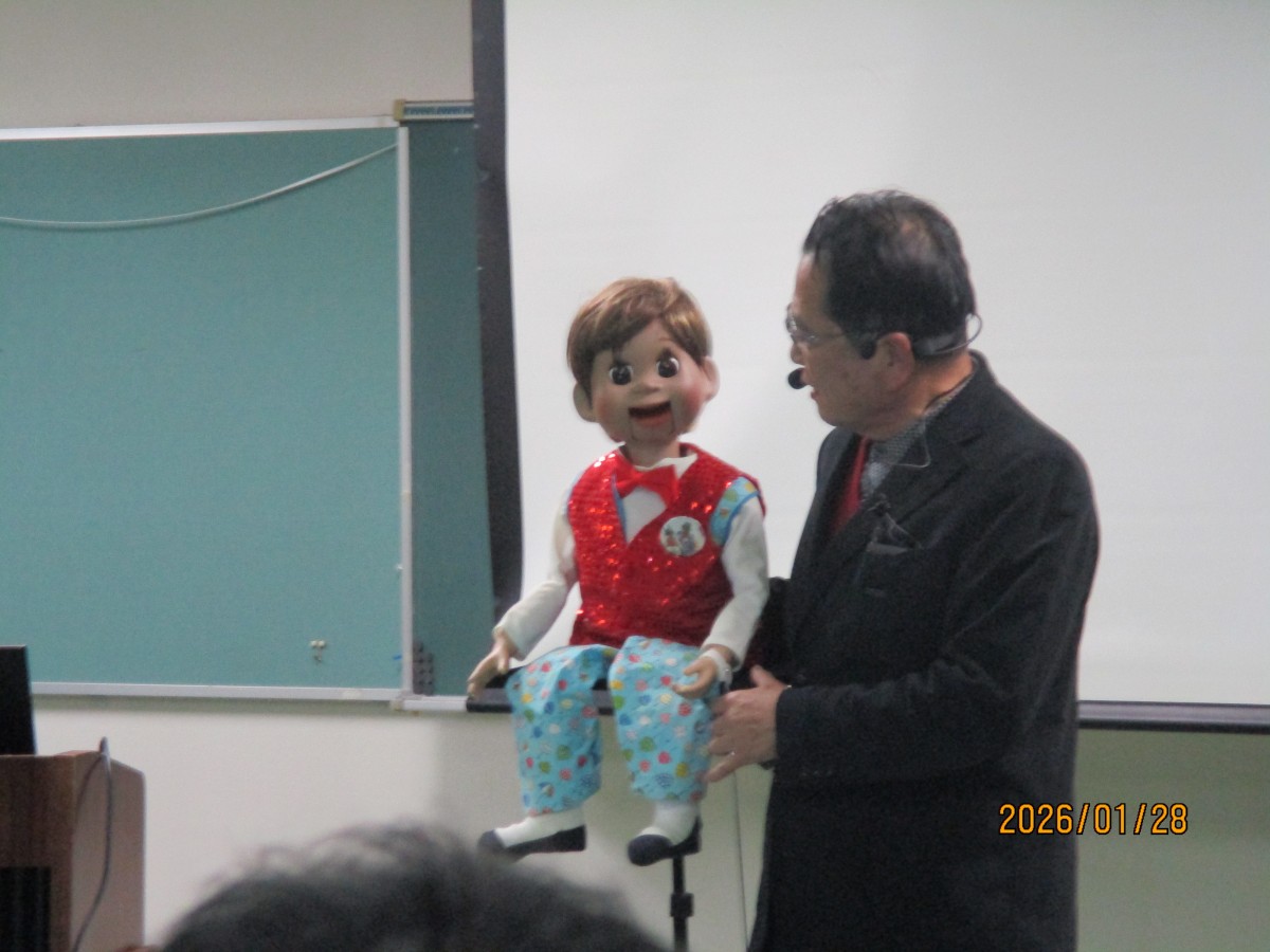 1月28日(水)に山田学区同和教育推進協議会の総括研修会と第2回人権講座をさせていただきました。総括研修会では、すべての町内会で町別懇談会を行っていただき、ありがとうございました。今年は出屋敷町がモデル地区として発表してくださいました。年代別に「人権の考え方が微妙に違う」ことは、興味深い内容でした。人権講座では、腹話術の奥井先生をお迎えいたしました。SOSミニレターでは、子どもたちのナイーブな悩みに、子どもたちを否定することなく、悩みを受け入れ、少しでも前向きになれるようにアドバイスされてました。腹話術では、参加されていた方々がニコニコされて見ておられました。また、機会があれば子どもたちにも見せてあげたいと思いました。