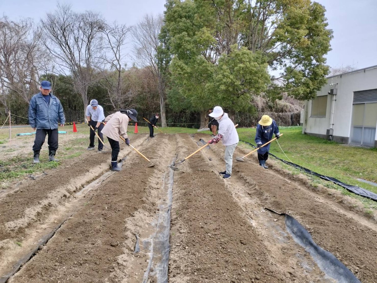 3月6日(金)3年生が山田園小教育後援会会長 久泉茂さんとボランティアのお二人のご協力のもと、じゃがいもを植えました