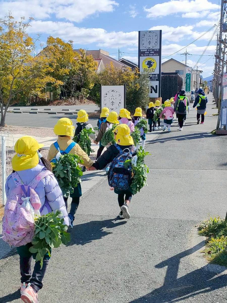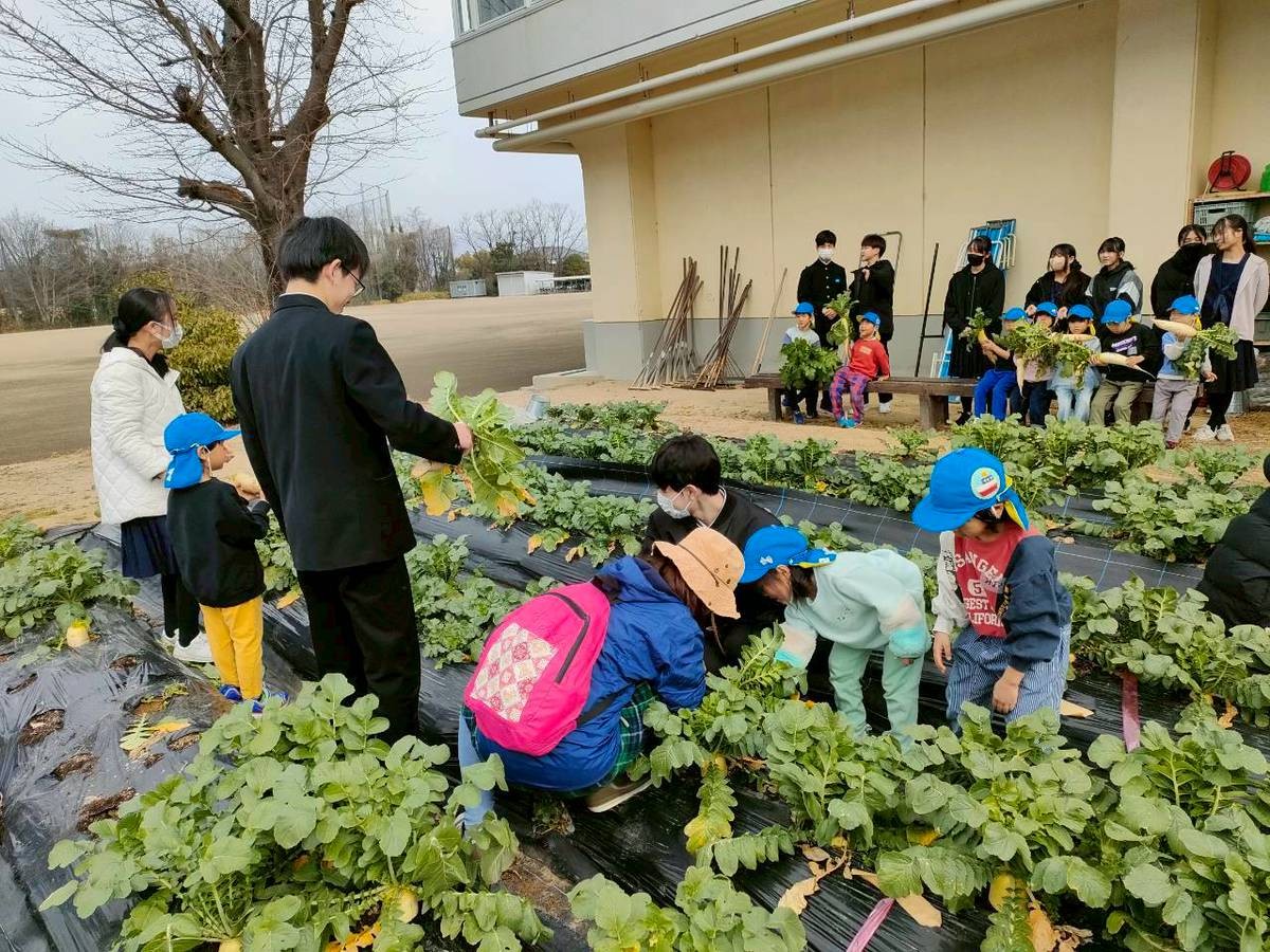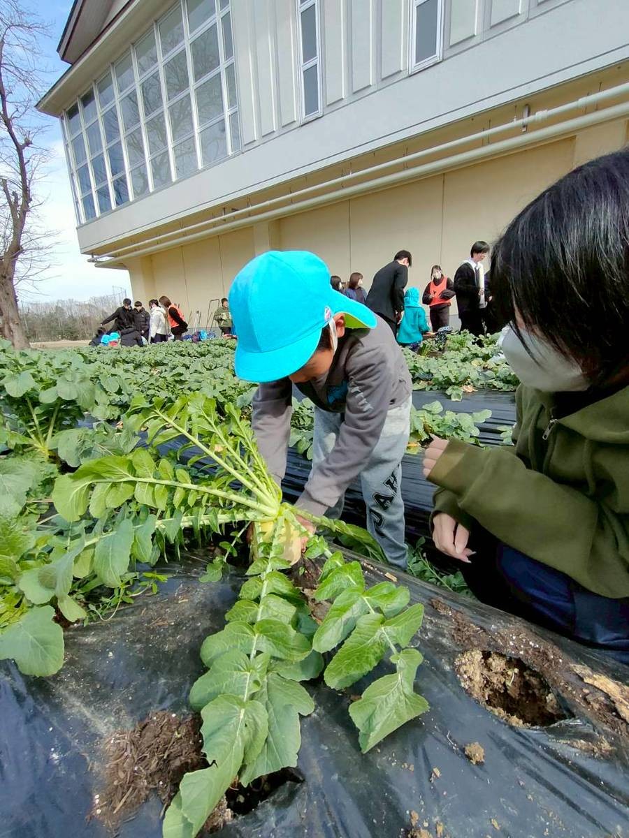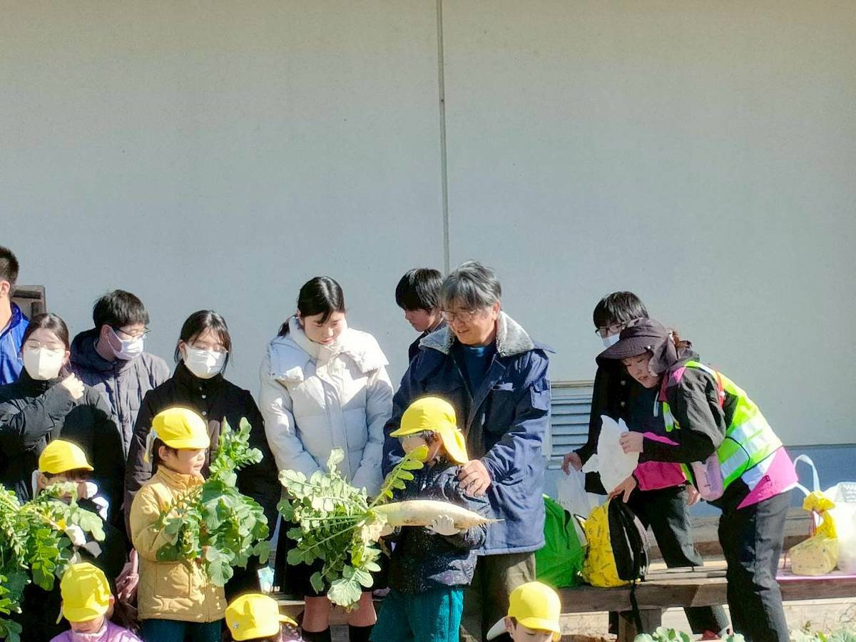 ●2/19・2/20・2/24笠縫・山田・くるみこども園5歳児×3年生が大根の収穫