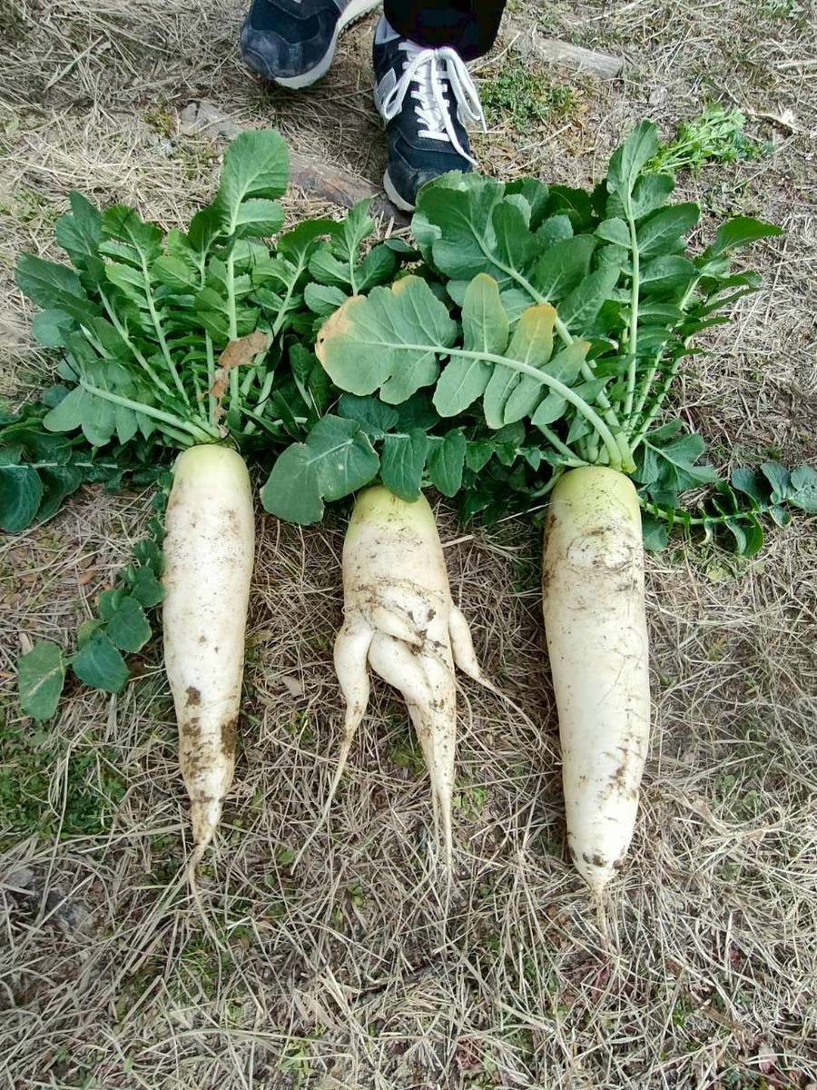 今年で3年目となる「卒業大根」思い思いの大根を収穫しました。なかなか抜けない大根に苦戦しながら抜けると大歓声が・・・やっぱり、収穫は楽しい~