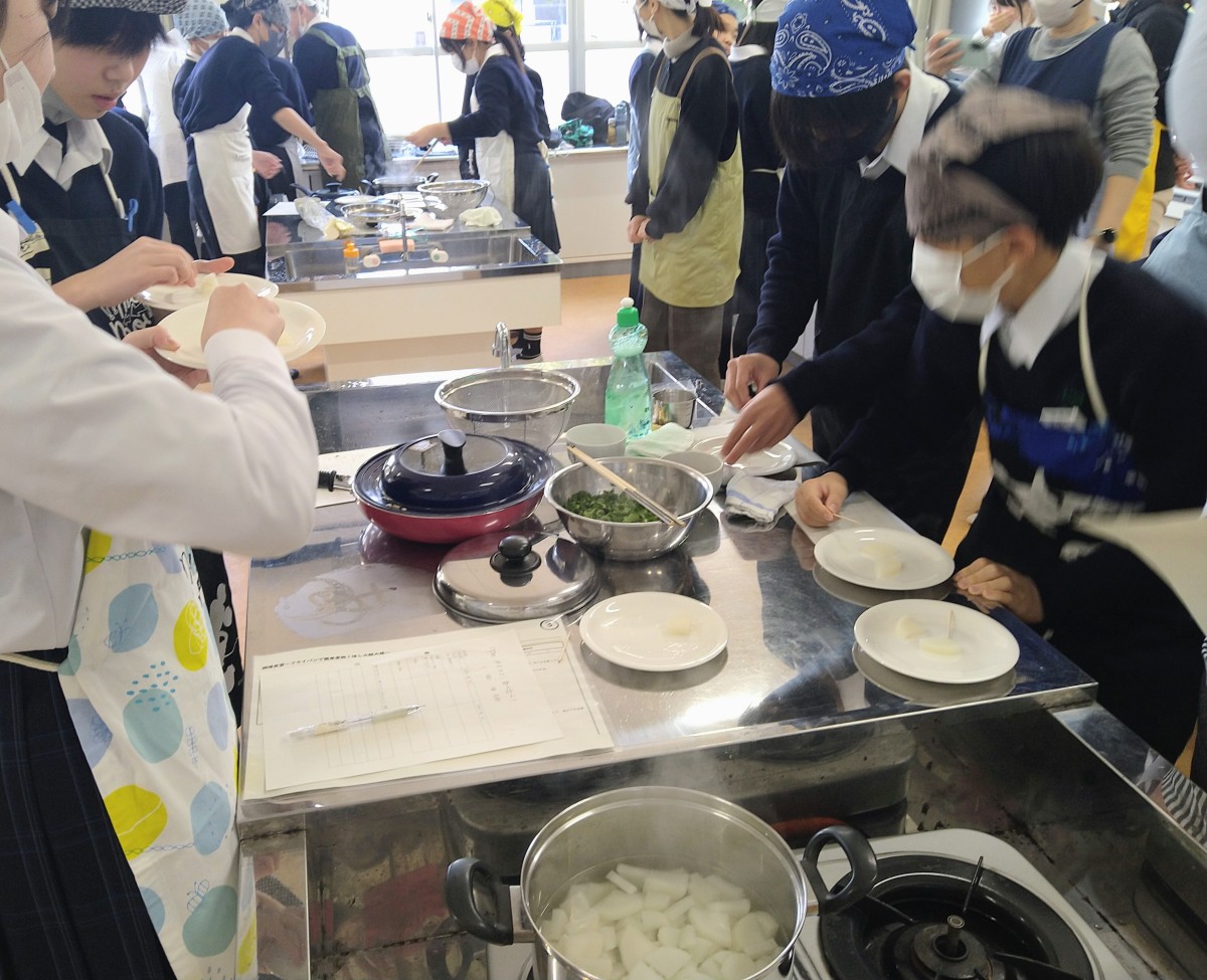 ● 3/10・3/11・3/12・3/13 1年生が「サケ大根」の調理実習