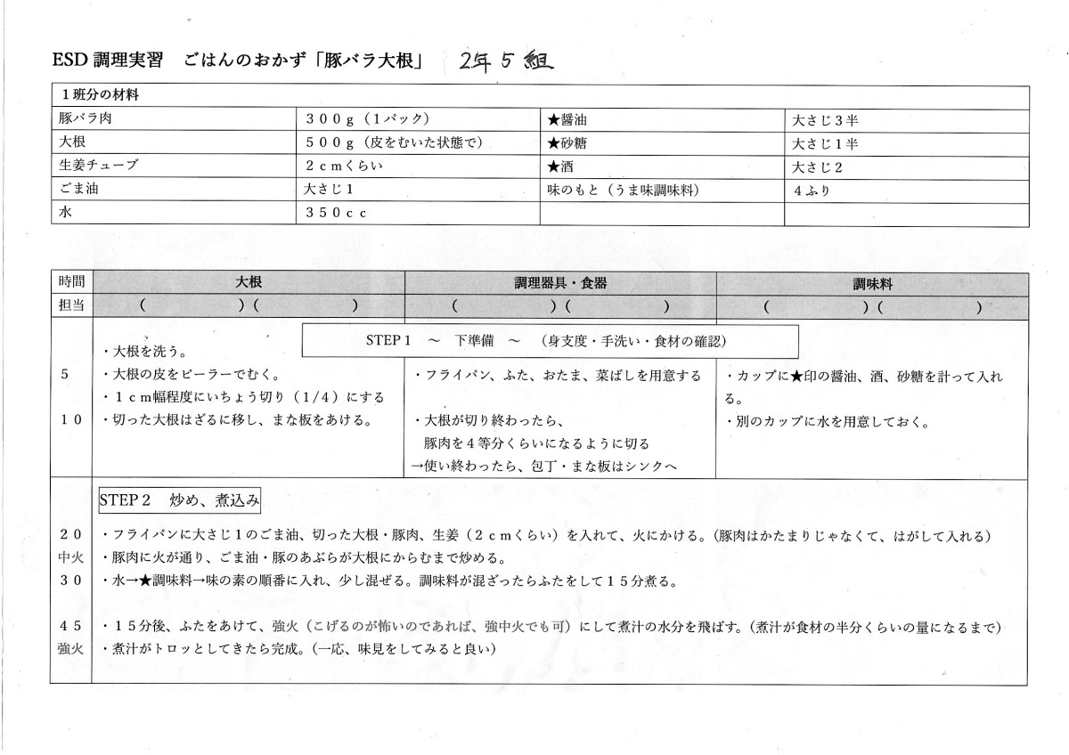 2年生は各学級で大根を使った独自のメニューを考案。スクールESDの集約として「地域の方々との交流」を目的の一つに掲げました。山田・笠縫両学区のまちづくり協議会・まちづくりセンター・地域コーディネーター・民生委員児童委員協議会と3日間で総勢50名を超える地域の皆様のご協力のもと5種の心のこもった大根料理を一緒に調理し、味わうという貴重な経験ができました。地域の皆様の温かいご支援に心より感謝を申し上げます。レシピも載せましたので、是非作ってみてください!(松中地域コーディネーター 杉江由紀子)