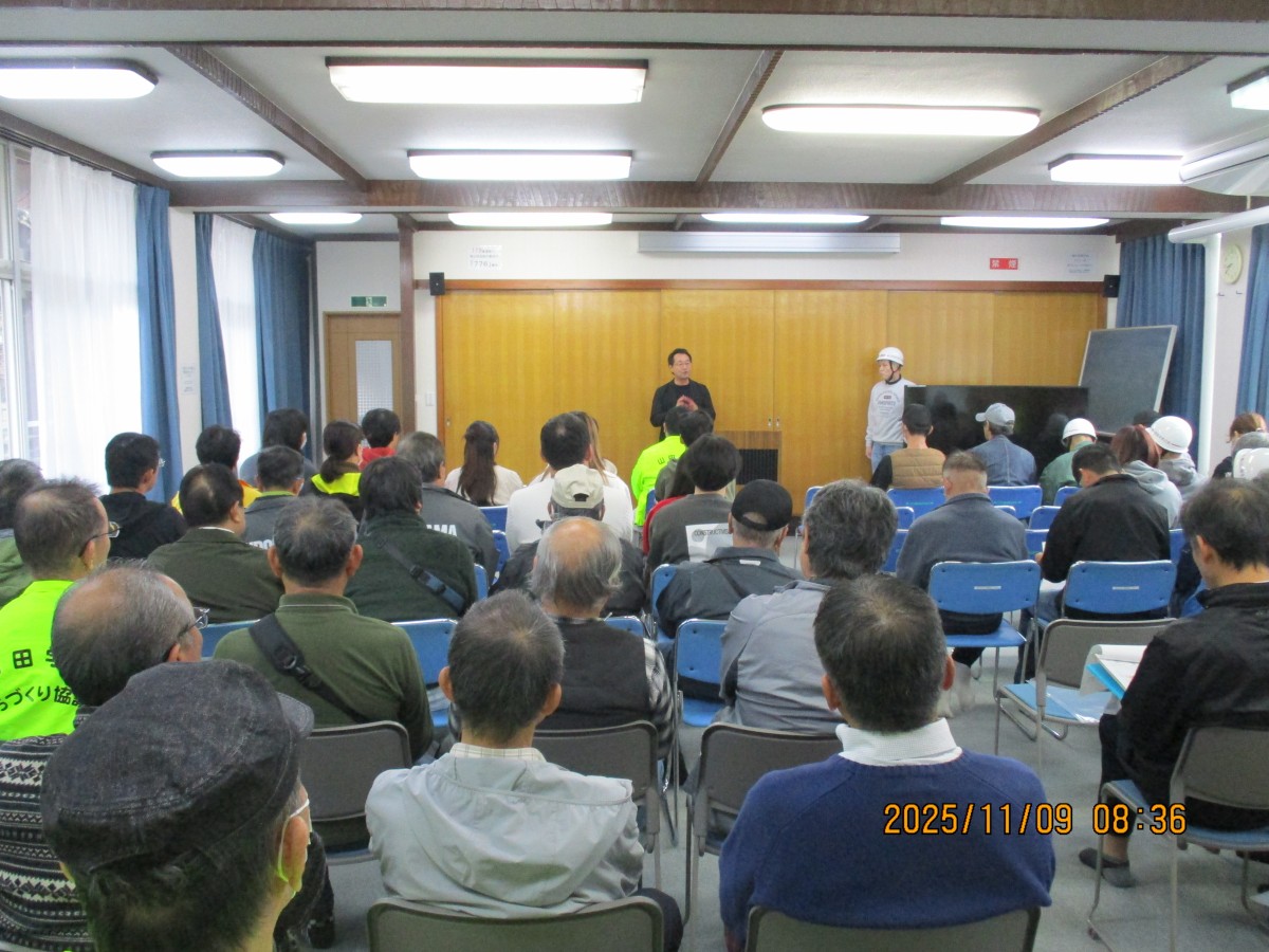 訓練を通しての講評ではいち早く安否の否の確認をすることが大切なので、情報収集する時間を意識した訓練やスマートフォンの利用や、自転車を使用する方法を取り入れる提案がありました。今後も防災の取組をまちづくりの一環にしてほしいとの話でした。