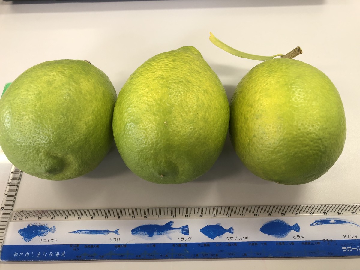 普段見ているレモンの2倍~3倍(1個約300g)ほどの大きさで、果皮からの香りはあまりありませんでしたが、カットすると果汁たっぷりで酸味が少なく、そのままでもとても食べやすい?美味しいレモンでした。