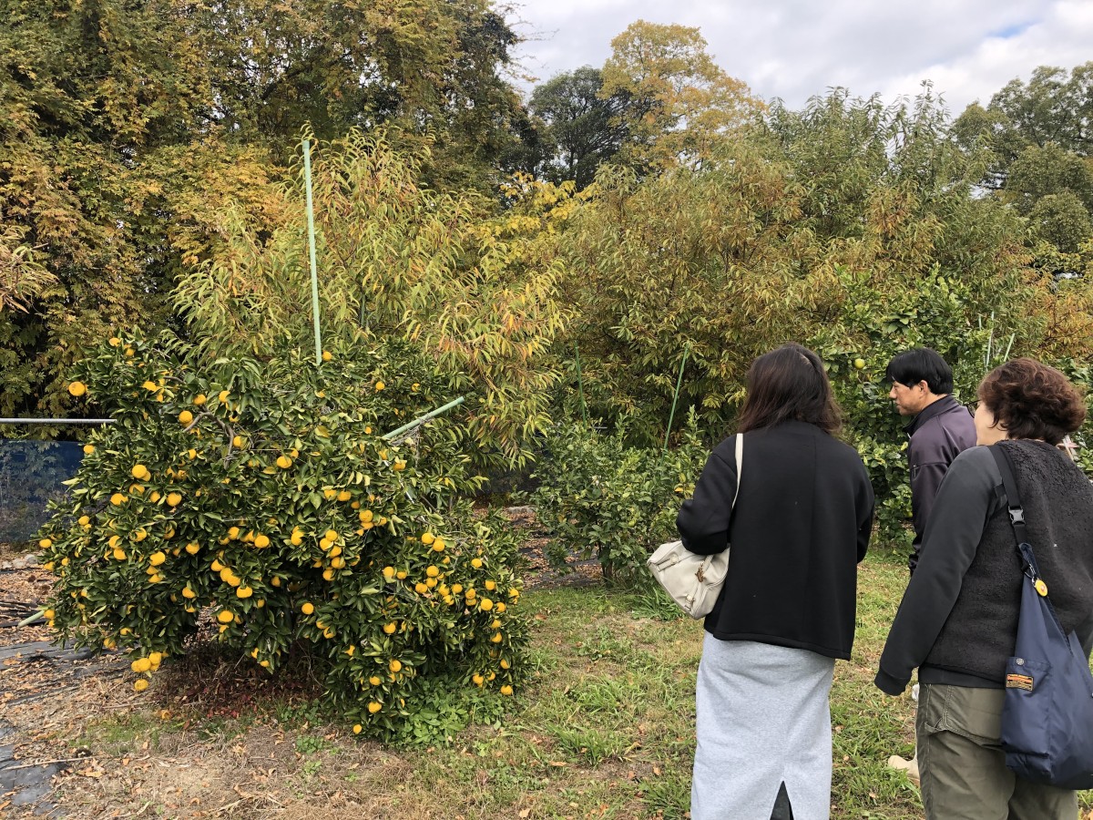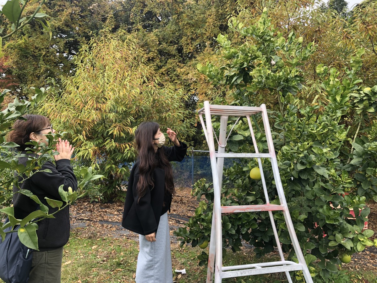 12月1日、ヤマミラメンバーで湖南農業高校のレモンの農場見学に行ってきました。オレンジ、桃、梨、栗、柿、シャインマスカット、アーモンドなど広い農場にたくさんの木が植わっていました。レモンについては、地植えで「ジャンボレモン」「リスボン」「マイヤーレモン」、鉢で「璃の香」「ピンクレモネード」が植えられていました。虫の除去の大切さや剪定についてもいろいろお話を聞かせていただきました。