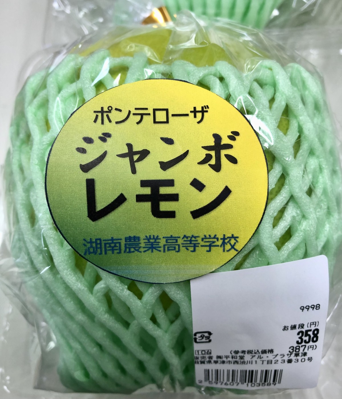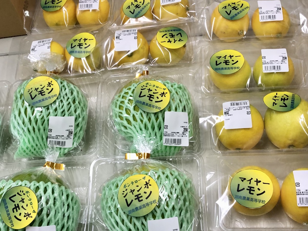 別日に湖南農業高校の食品販売会に行ってきました。農場で育てられた「ジャンボレモン」「マイヤーレモン」を購入。