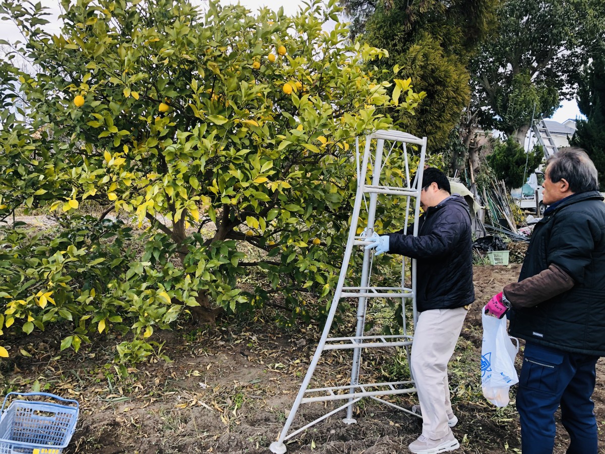 ヤマミラレモンプロジェクト「レモン収穫」 草津市内にある3か所のレモンを収穫させていただきました! レモンは棘があるので恐る恐るでしたが、一つ収穫するたびに爽やかなレモンの良い香りがふわっと広がって、幸せな時間でした。 本日収穫したツヤツヤのレモンたち、このフレッシュな果汁をたっぷり使って、これからシャーベットを試作する予定です!完成が待ち遠しいです!