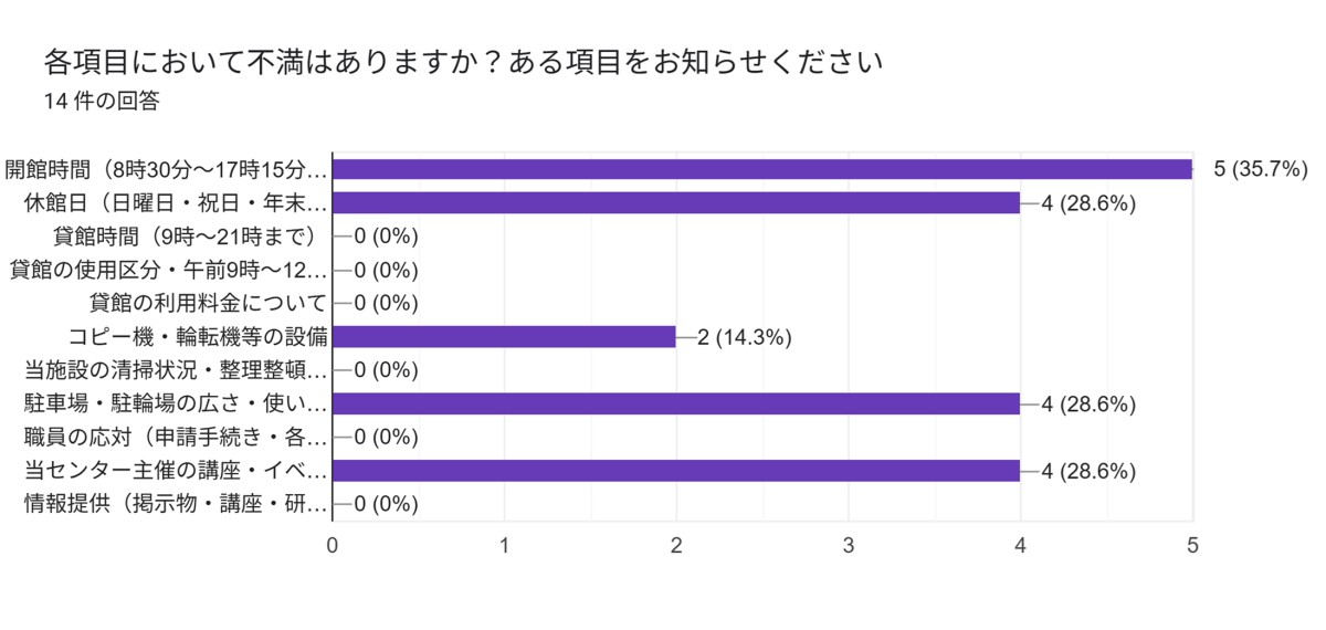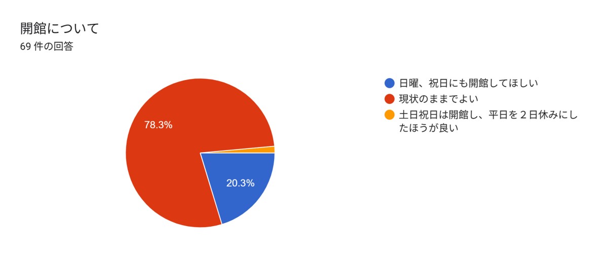 開館時間にほとんど学区内にいないため、利用できないことが多い。多くの住民は利用の機会を逸していると思う。