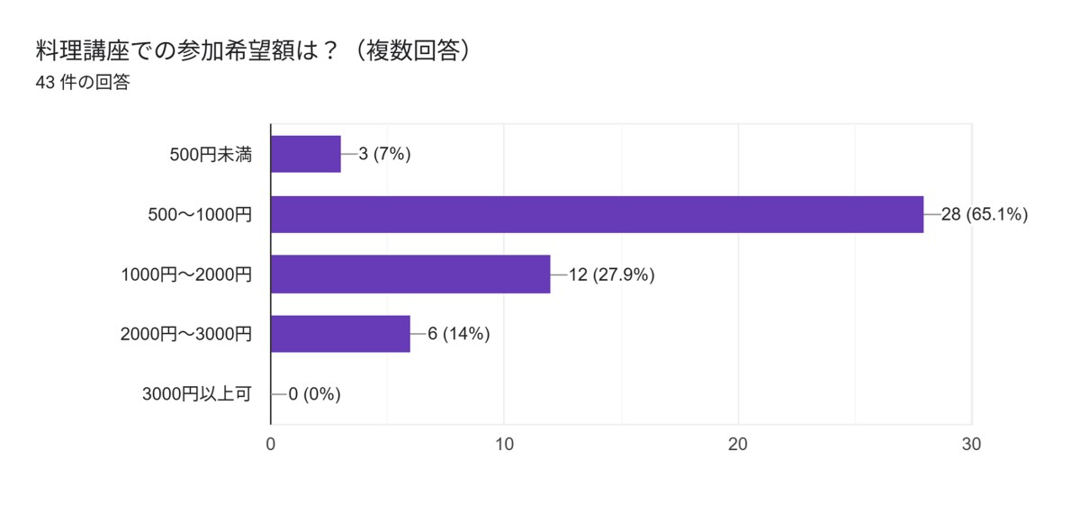 平日ではなく、男性も参加出来るよう休日に開催希望。料理教室イコール女性、子供の