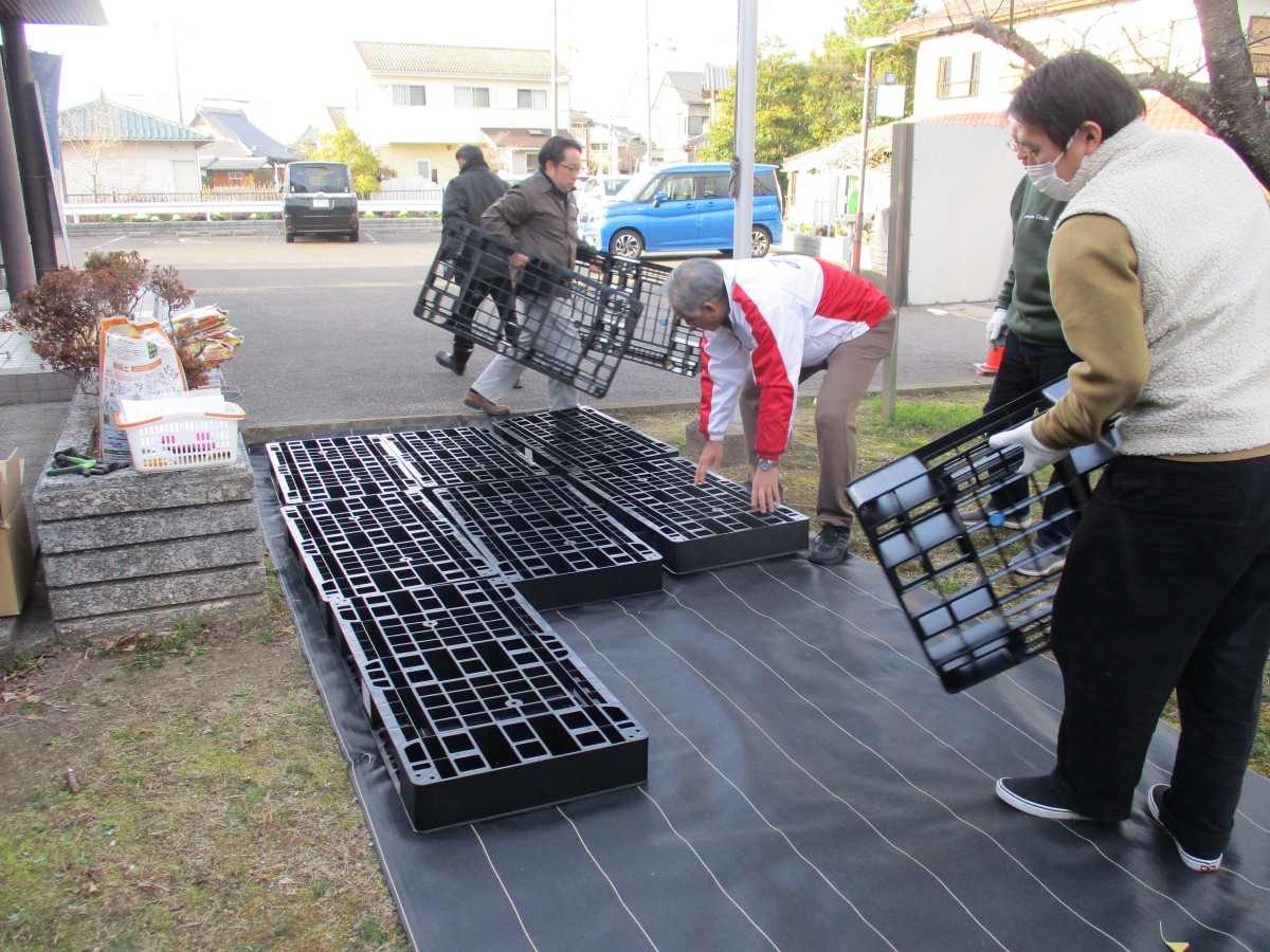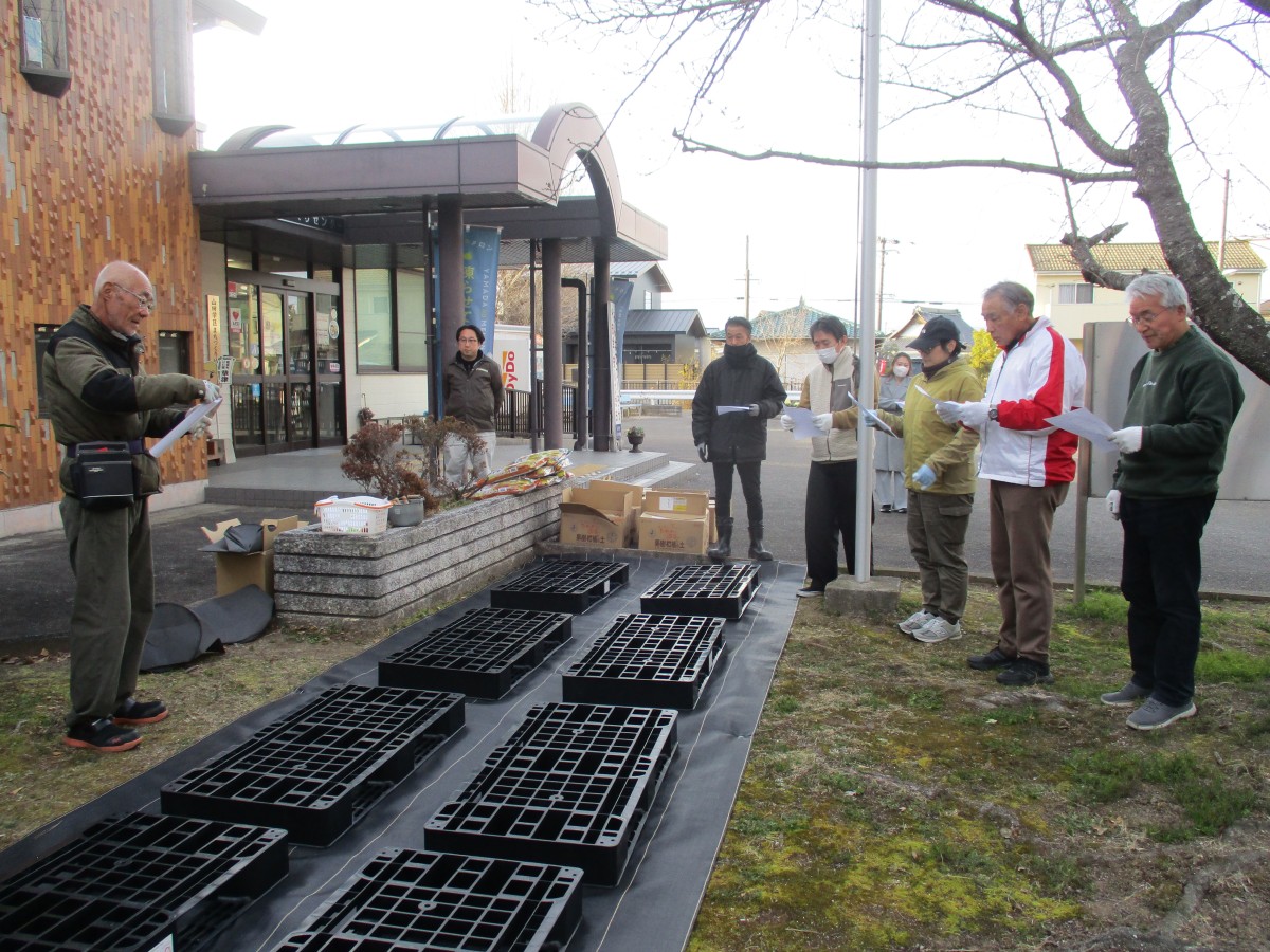 蒲生先生と井上先生の指導の下、地植えではなく「ルートポット」という不織布の鉢に植える方法に挑戦しました。ルートポットを使用することで、根が空気に触れやすく、水が土全体にいきわたり、根が大きくなりすぎないように調整し実つきも良い栽培ができると教わりました。