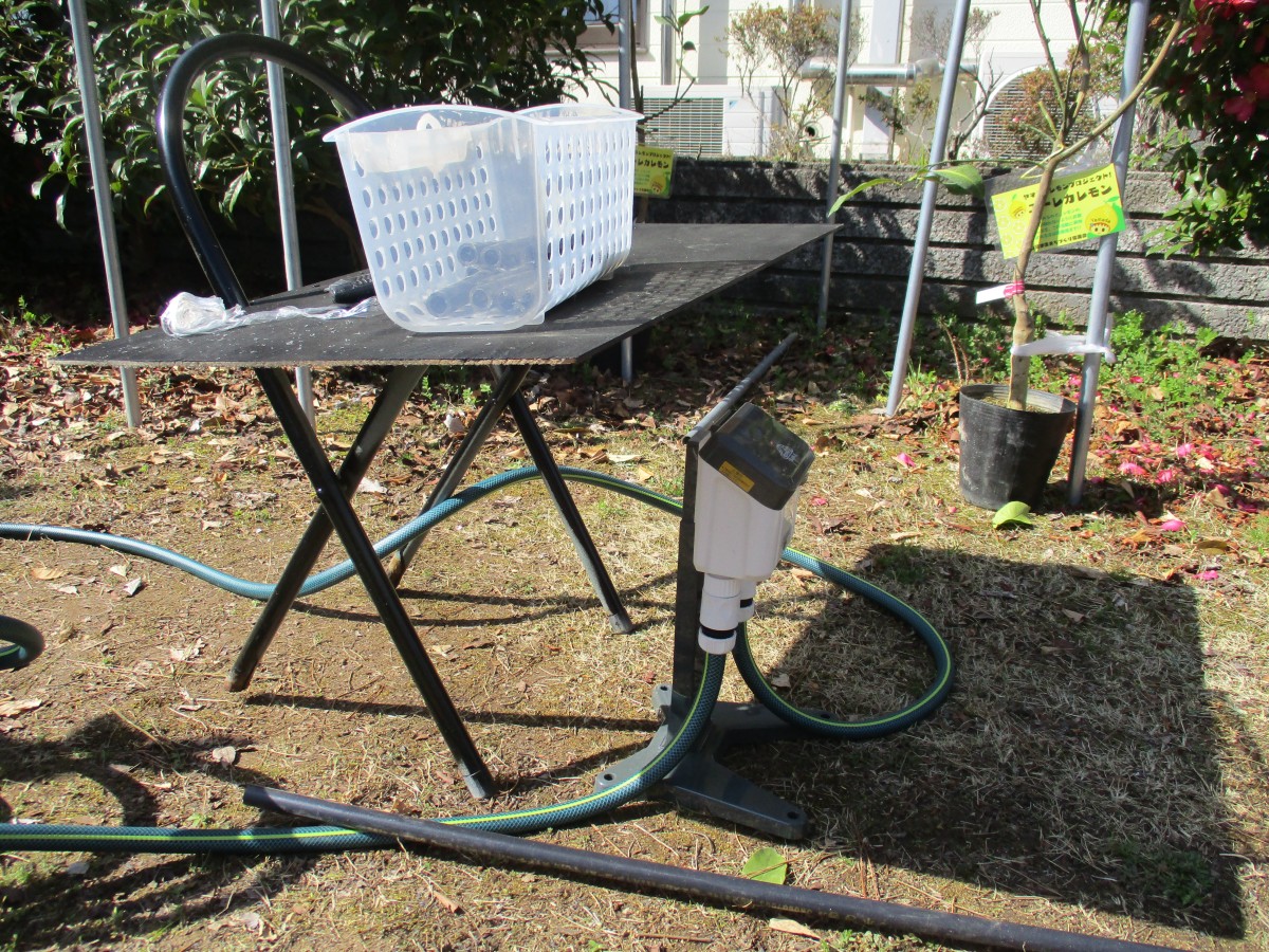 3月16日、先日植えたレモンの木に自動灌水機を設置しました。
