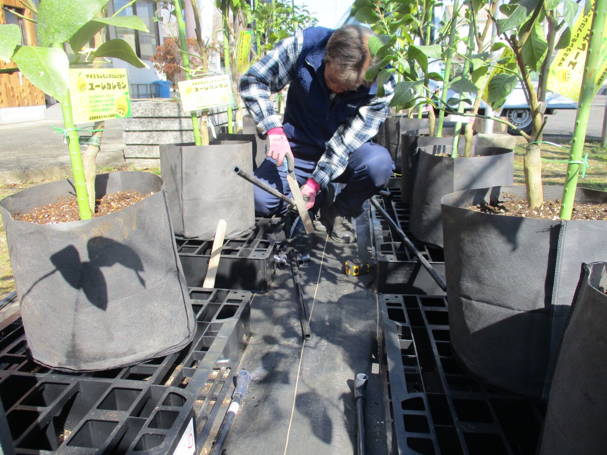 ヤマミラレモンプロジェクト「レモンに自動灌水機設置」