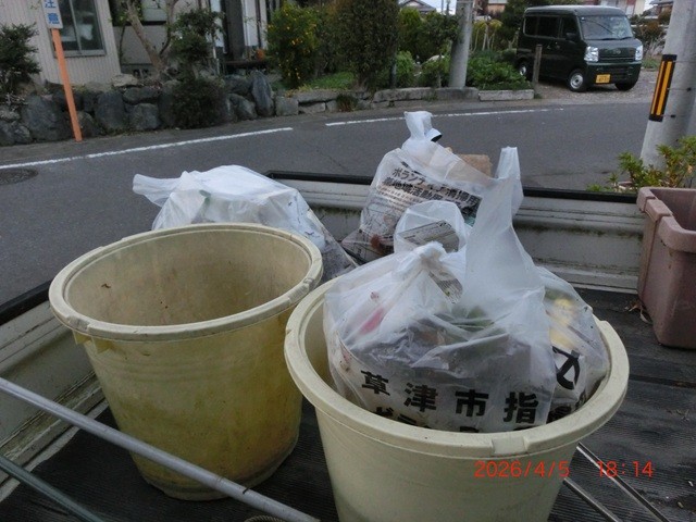 (焼却ゴミ、缶、瓶、なんと破砕ゴミもあり)このごろでは2~3袋/5日です。ほぼすべてが